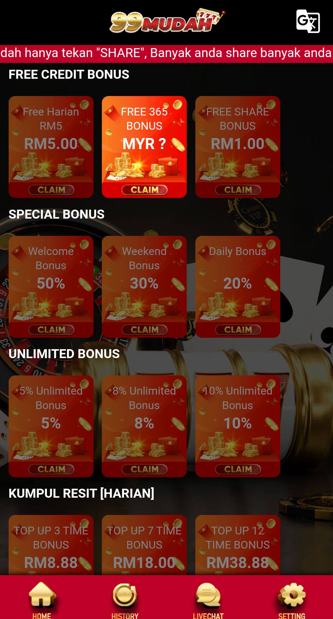 ๐ฏ Daily deposit bonus ๐ฏ%.