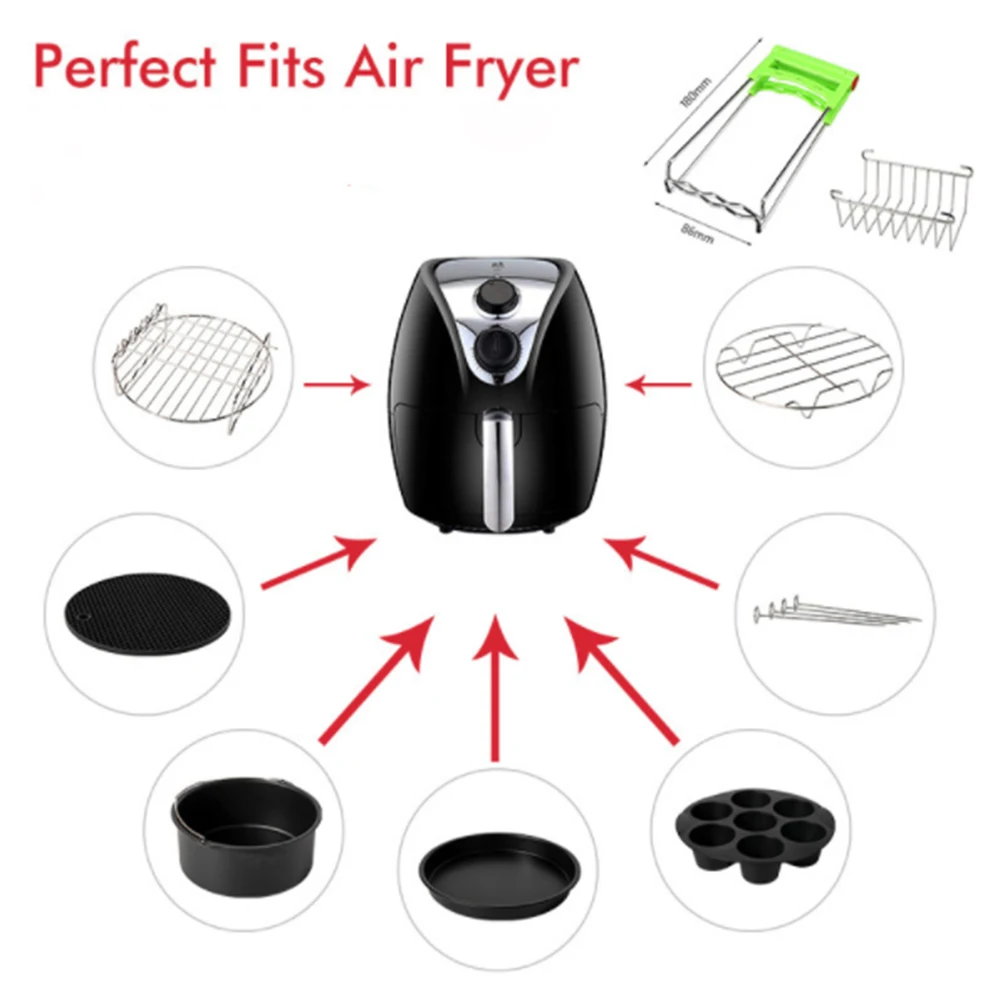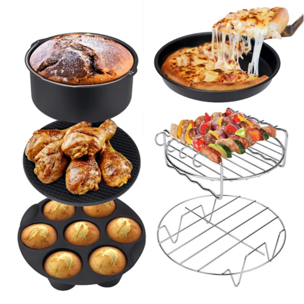 9PCS/Set 6/7/8 Inches Air Fryer Accessories Pizza Tray Grill Toast Rack Steam Rack Insulation Pad 3.2QT-5.8QT Home Kitchen Parts - Купить с бесплатной доставкой