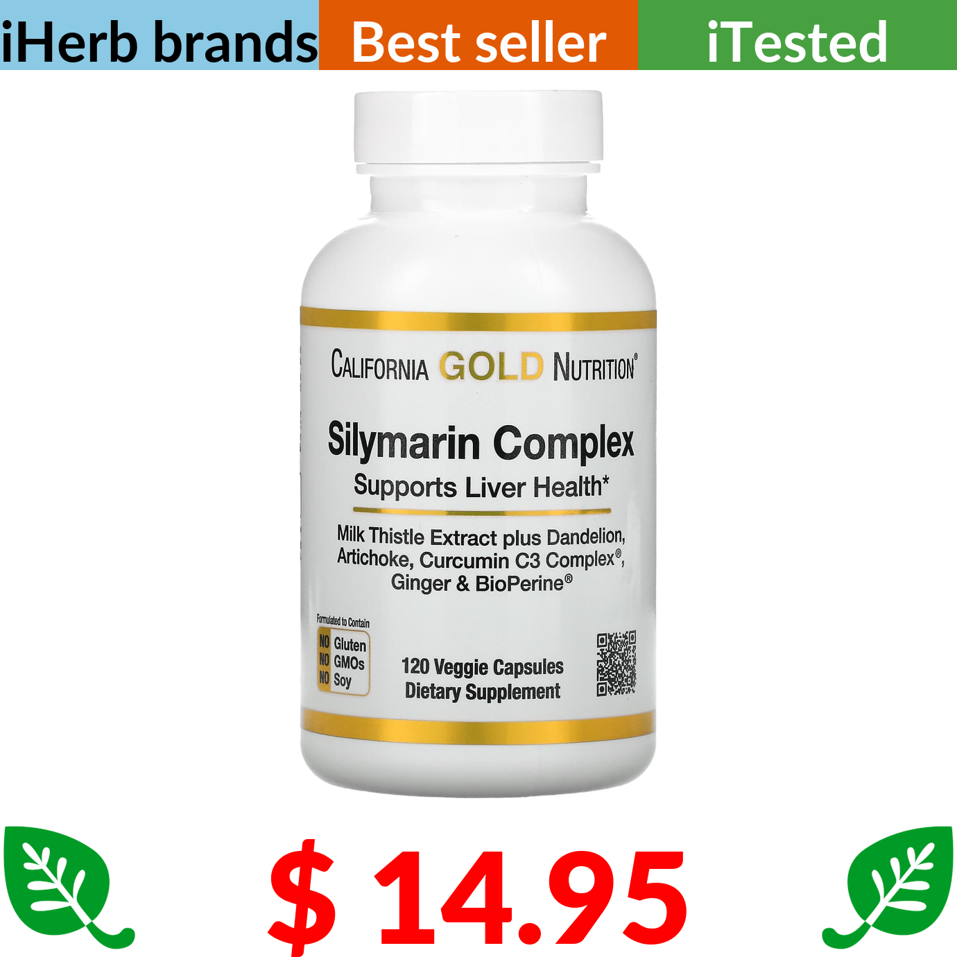 $ 14.95 California Gold Nutrition, Silymarin Complex, Milk Thistle Extract Plus Dandelion, Artichoke, Curcumin C3 Complex®, Ginger, and BioPerine®, 120 Veggie Capsules
