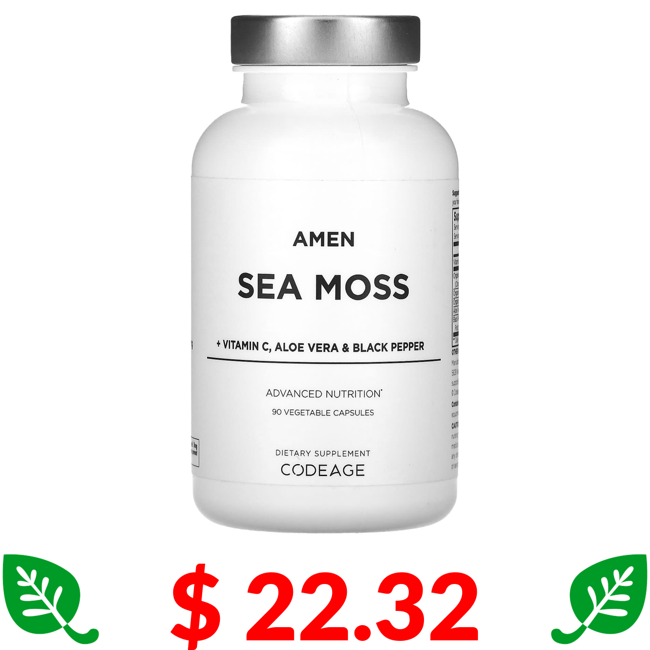 $ 22.32 Codeage, Amen, Sea Moss + Vitamin C, Aloe Vera & Black Pepper, 90 Vegetable Capsules