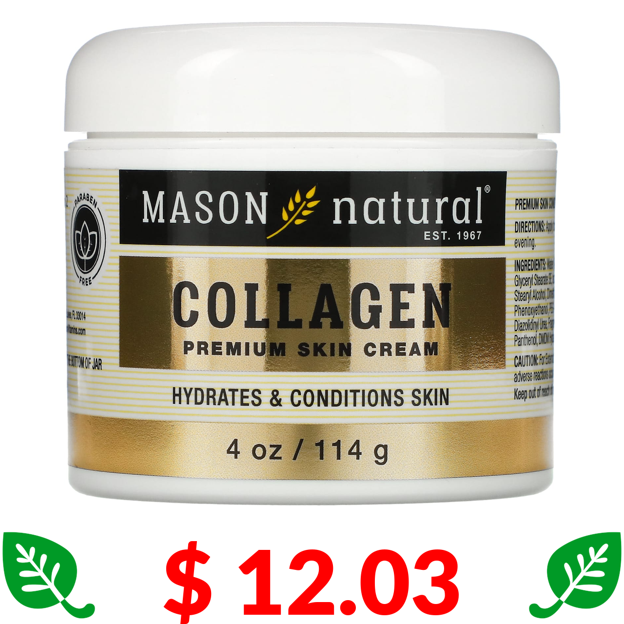 $ 12.03 Mason Natural, Collagen Premium Skin Cream, Pear Scented, 4 oz (114 g)