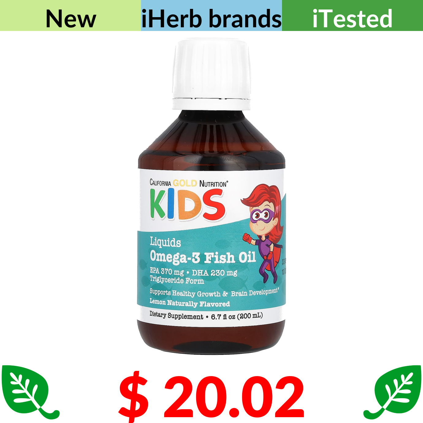 $ 20.02 California Gold Nutrition, Norwegian Kids Omega-3 Fish Oil, Natural Lemon Flavor, 6.7 fl oz. (200 ml)