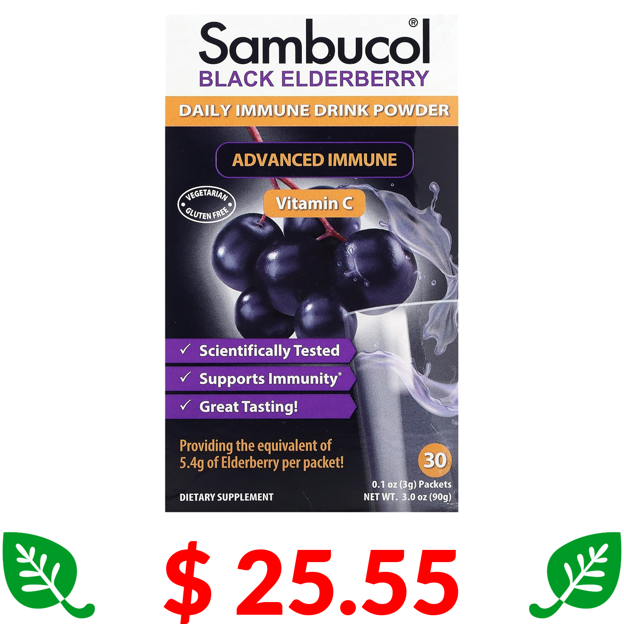 $ 25.55 Sambucol, Black Elderberry, Daily Immune Drink Powder, Natural Berry, 30 Packets, 0.1 oz (3 g) Each