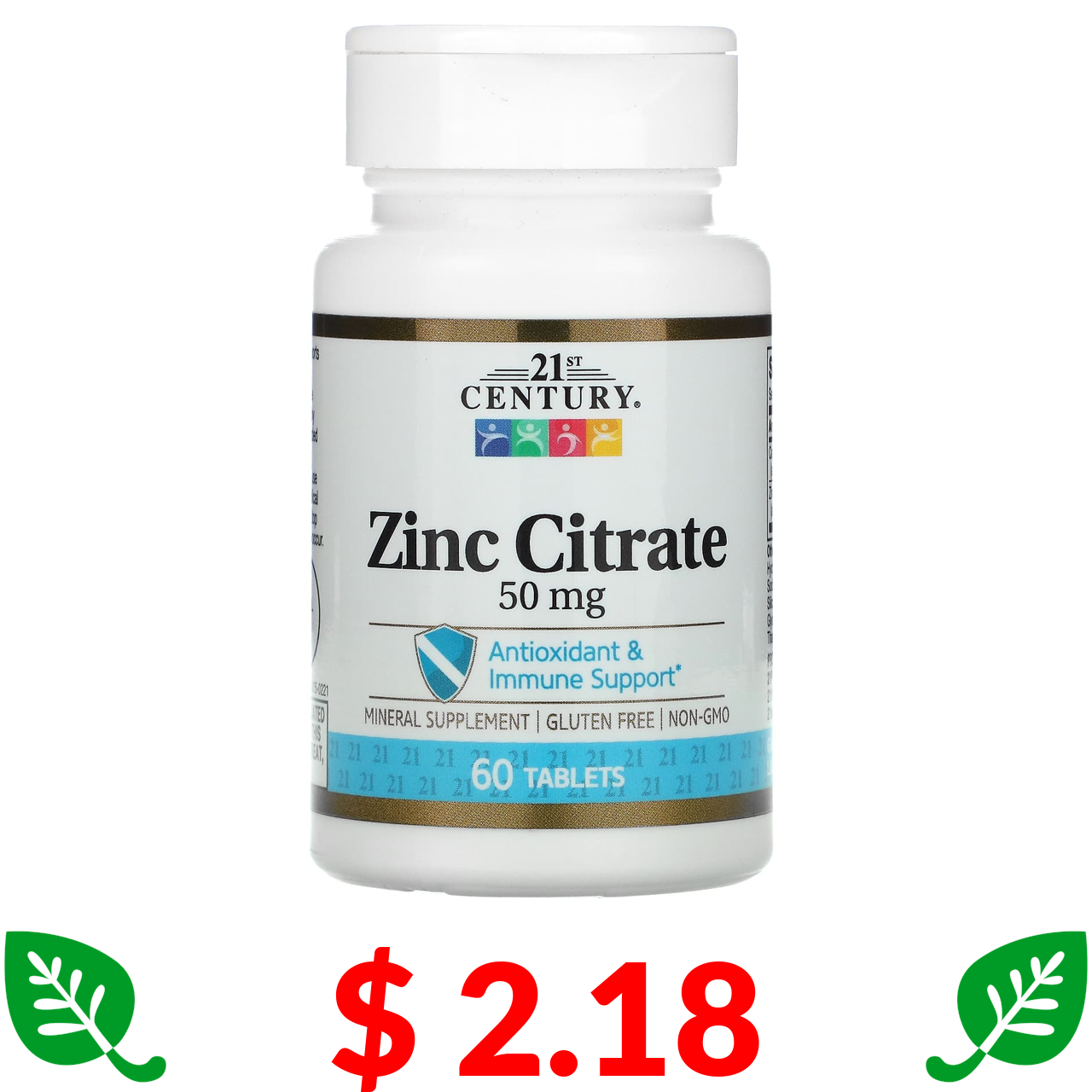 $ 2.18 21st Century, Zinc Citrate, 50 mg, 60 Tablets