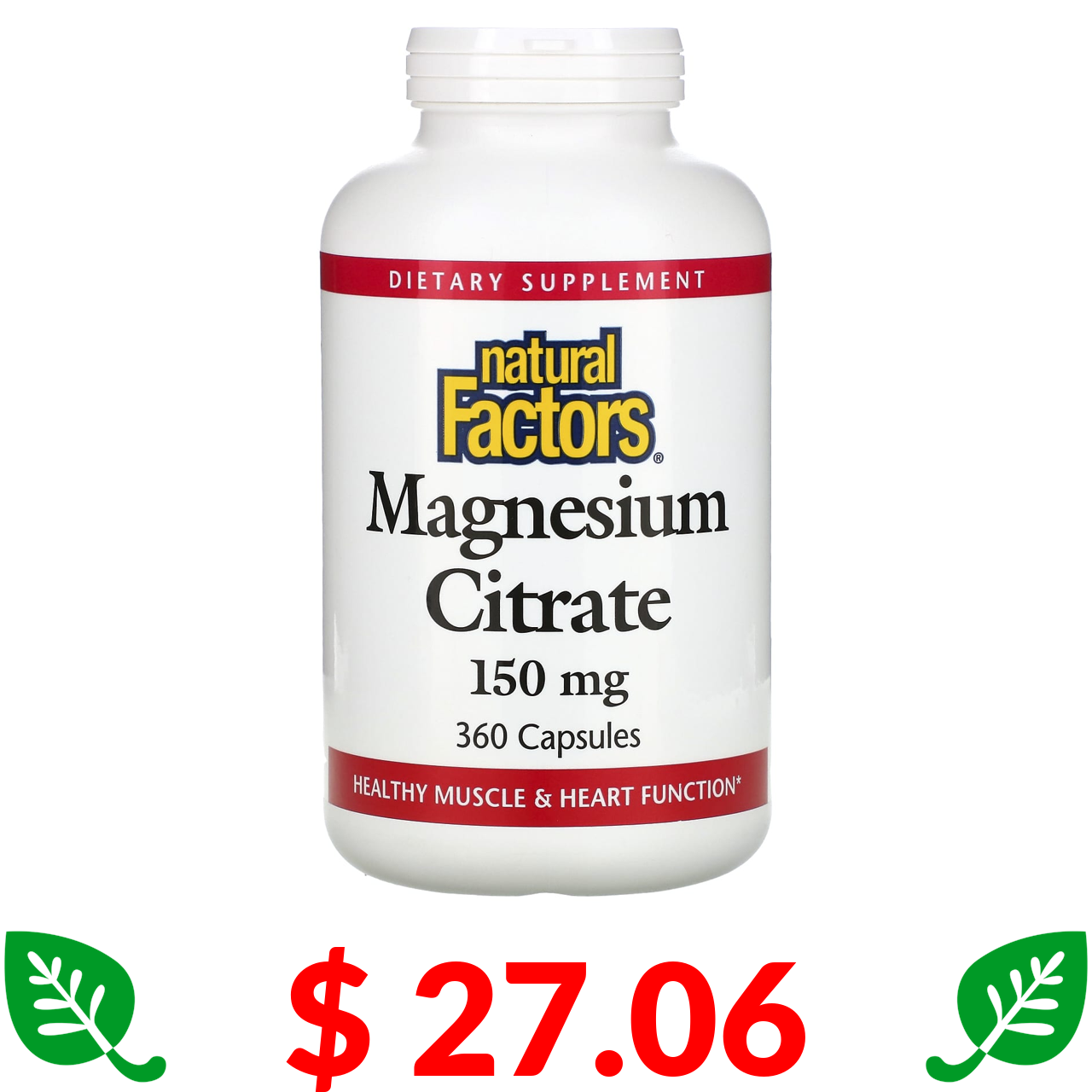 $ 27.06 Natural Factors, Magnesium Citrate, 150 mg, 360 Capsules