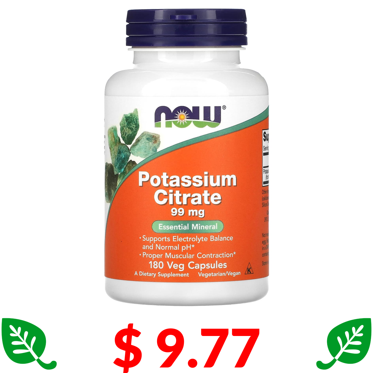 $ 9.77 NOW Foods, Potassium Citrate, 99 mg, 180 Veg Capsules