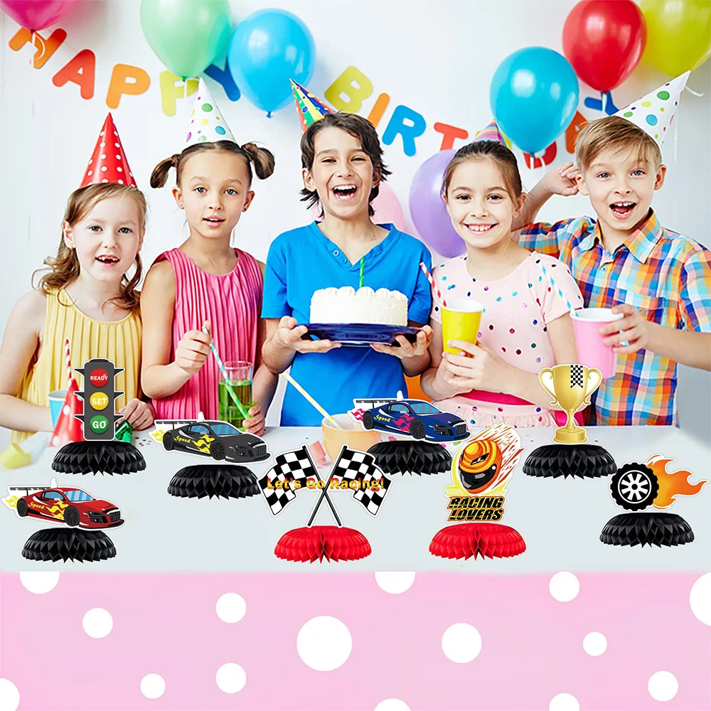 «9pcs/Set Race Car Birthday Decorations Honeycomb Centerpieces White Black Checkered Flag Table Decor Kids Theme Supplies Gifts» по лучшей цене на рынке! Всего за 14$ (1330рублей)