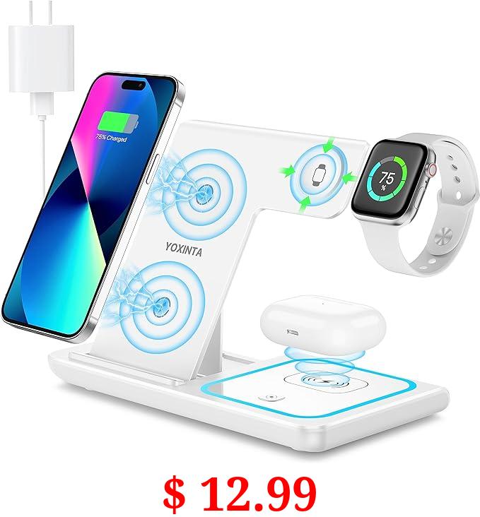 $ 12.99 Wireless Charging Station, 3 in 1 Wireless Charger Stand, Fast Wireless Charging for iPhone 15 14 13 12 11Pro Max XR XS 8 Plus, for Apple Watch 8 7 6 5 4 3 2 SE, for Airpods 3 2 Pro(White)
