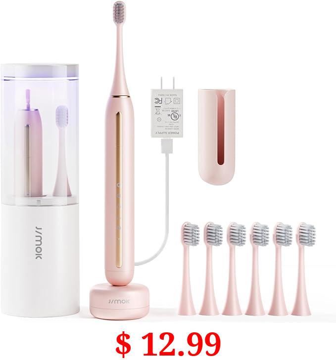 $ 12.99 JIMOK Sonic Rechargeable Electric Toothbrushes for Adults with 6 Brush Heads & UV Travel Case,Teeth Whitening, Power Toothbrush with Holder, 4 Hours Charge for 90 Days(Pink)