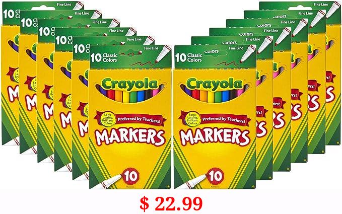 $ 22.99 Crayola Fine Line Markers Bulk, School Supplies for Kids, 12 Marker Packs with 10 Colors, Multi