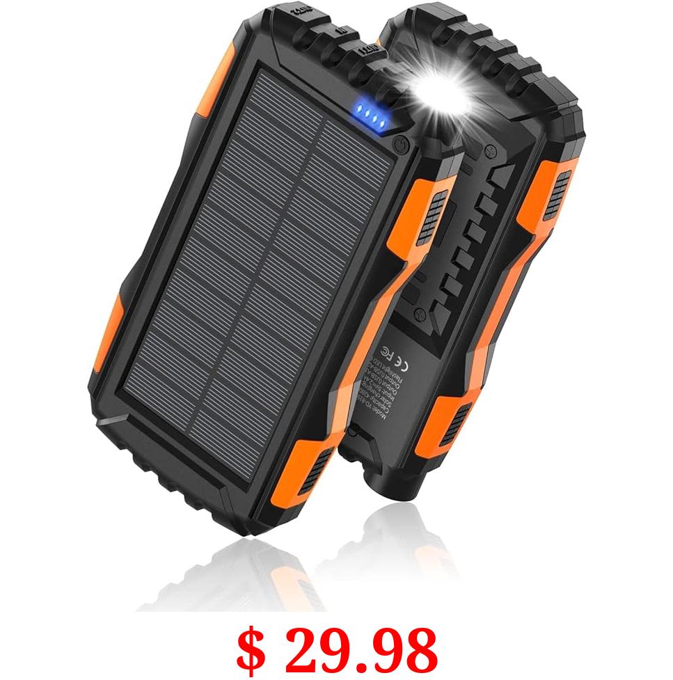 $ 29.98 Power-Bank-Solar-Charger - 42800mAh Portable Charger,Solar Power Bank,External Battery Pack 5V3.1A Qc 3.0 Fast Charger Built-in Super Bright Flashlight (Orange)