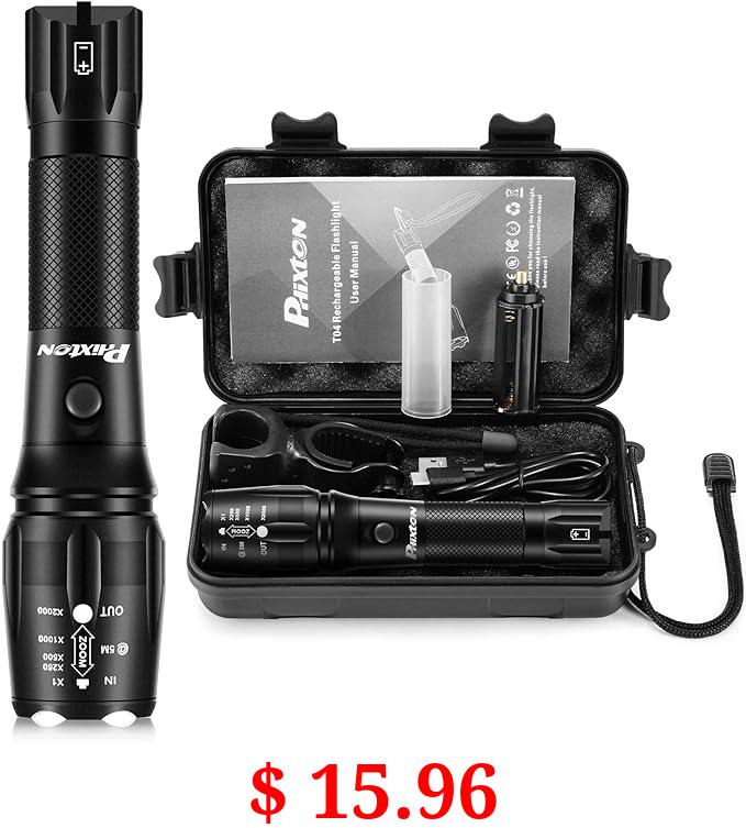 $ 15.96 PHIXTON Rechargeable Flashlights High Lumens, 5000 Lumen USB C Chargeable LED Flashlight, Bright Strong Handheld Flash Lights, Long Lasting, Adjustable Focus, 5 Modes, for Emergencies Hiking Gift