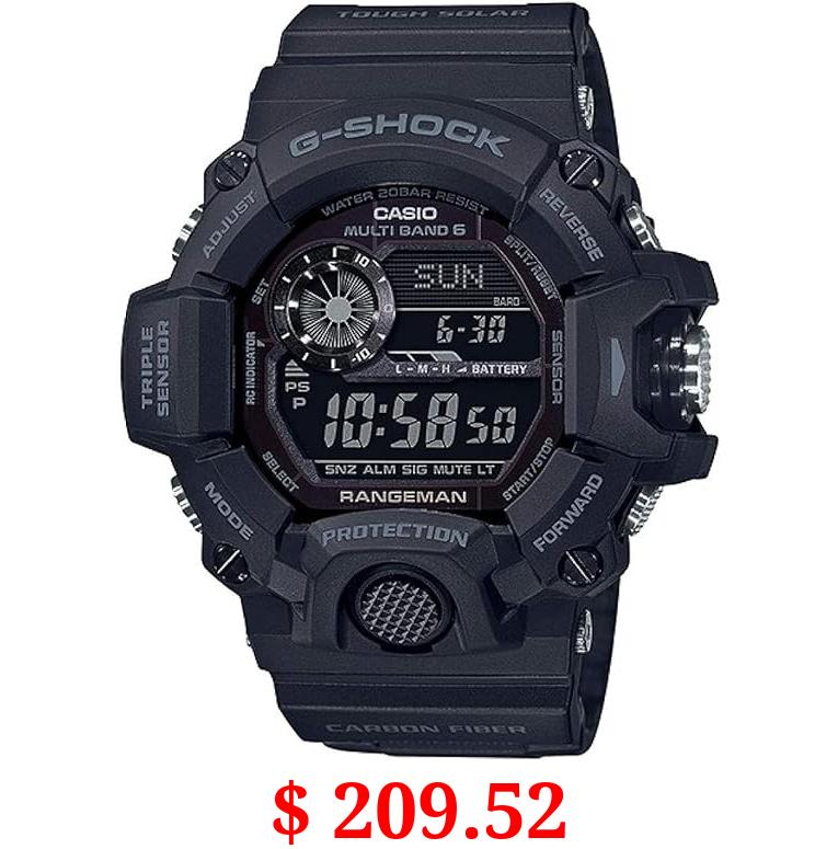 $ 209.52 Casio mens Tactical Rangeman G-Shock Solar Atomic Watch, Black/Black, GW9400-1B