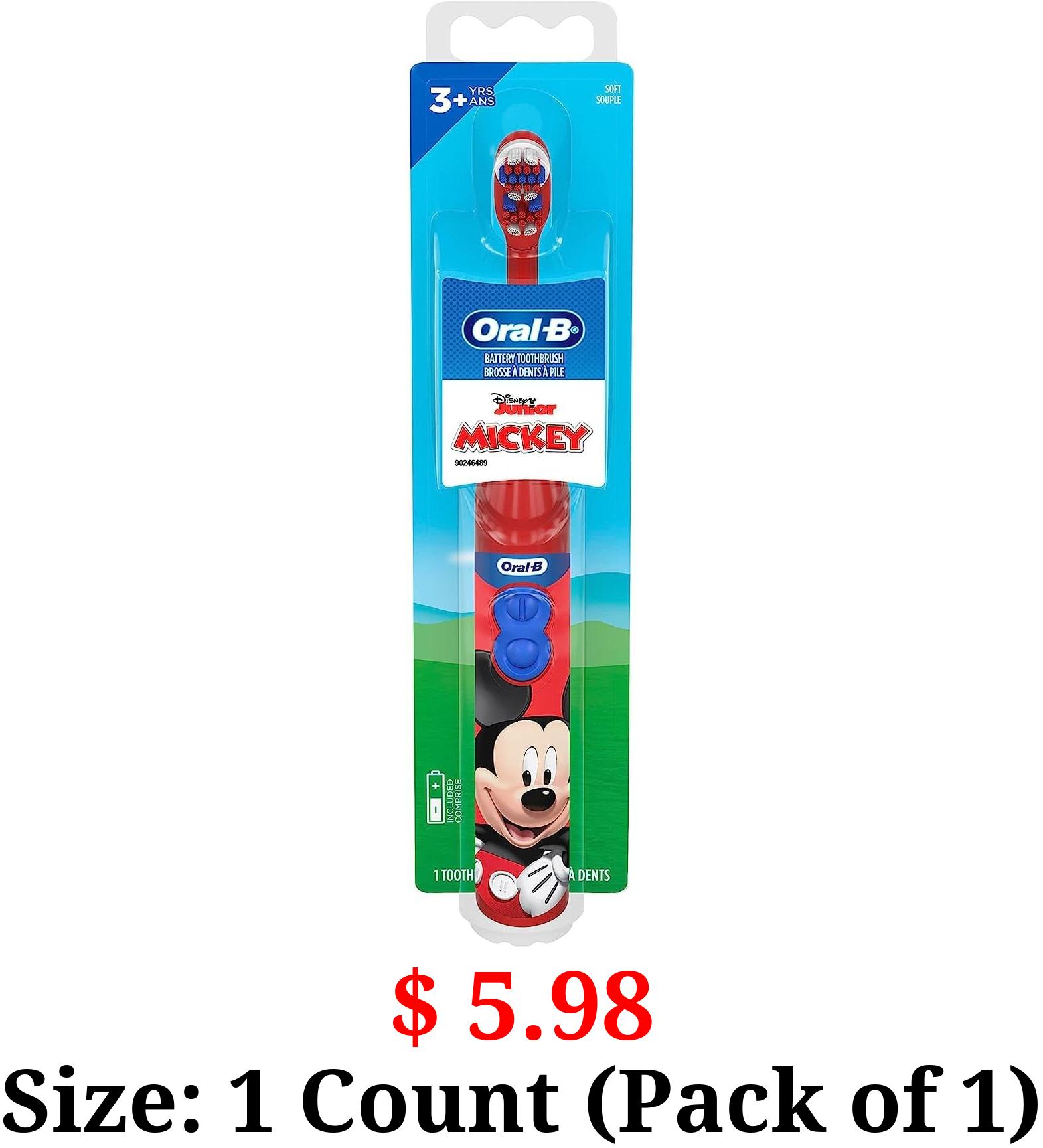 $ 5.98 Size: 1 Count (Pack of 1) Oral-B Kid's Battery Toothbrush Featuring Disney's Mickey Mouse, Soft Bristles, for Kids 3+