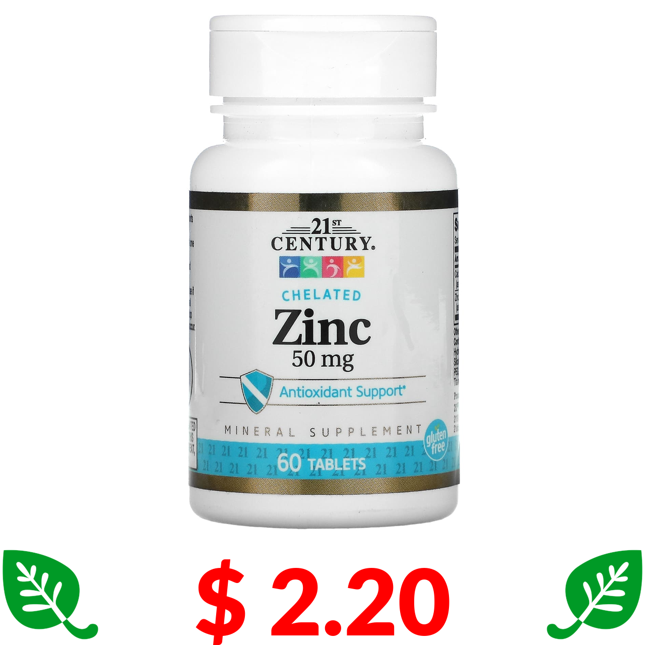 $ 2.20 21st Century, хелатний цинк, 50 мг, 60 таблеток