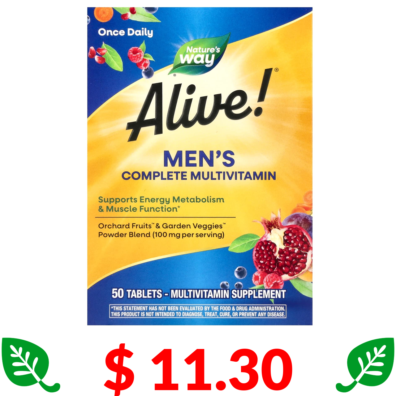 $ 11.30 Nature's Way, Alive!, комплекс мультивітамінів для чоловіків, підтримка енергії, 50 таблеток