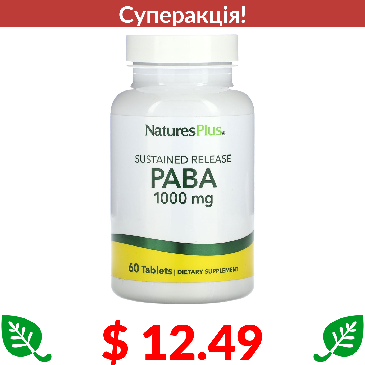 $ 12.49 Nature's Plus, Sustained Release PABA, 1,000 mg, 60 Tablets