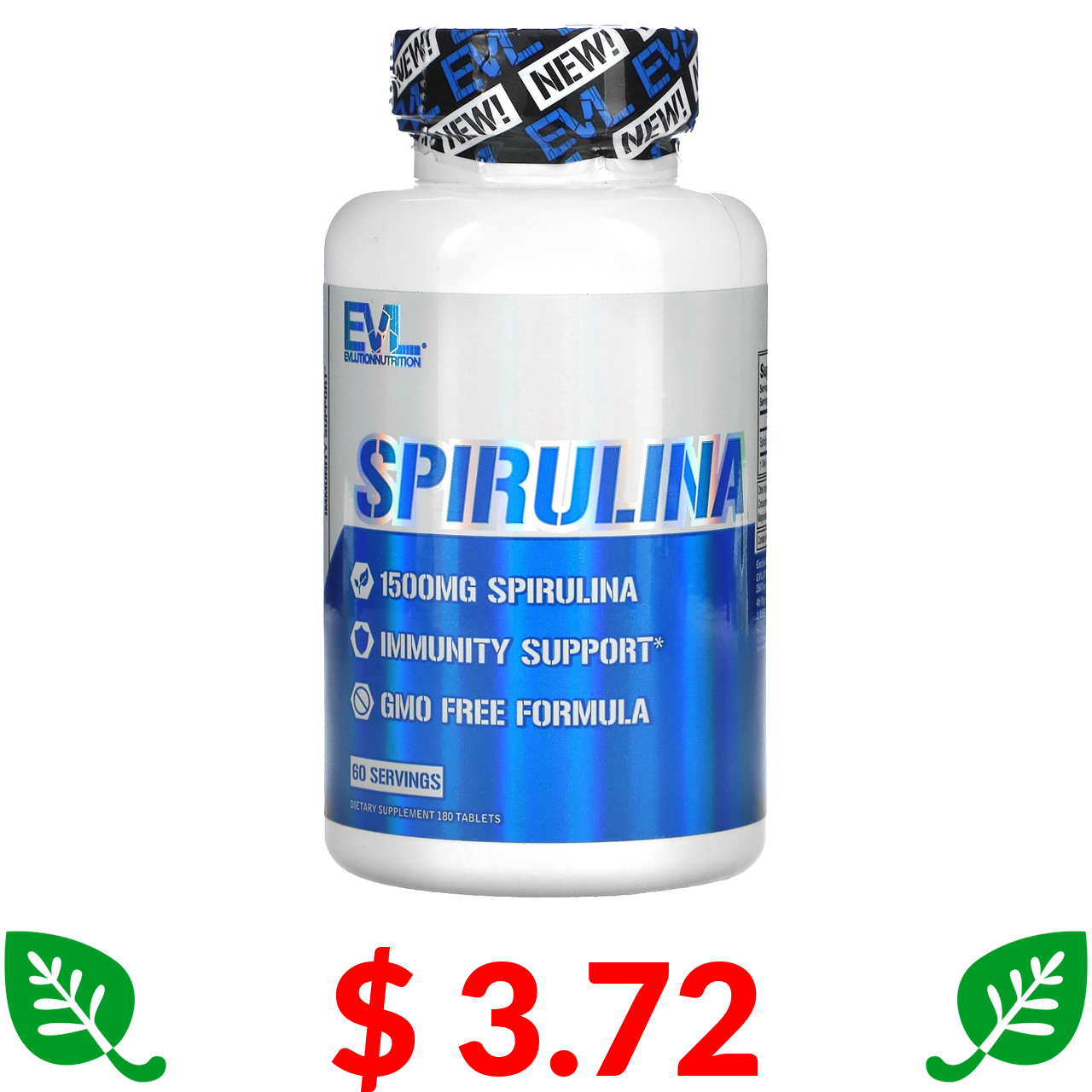 $ 3.72 EVLution Nutrition, спіруліна, 180 таблеток