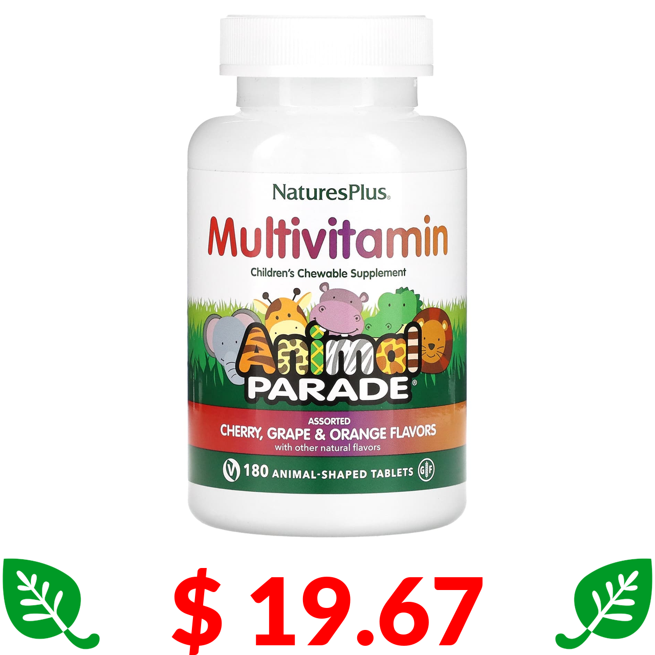 $ 19.67 Nature's Plus, Source of Life, Animal Parade, жувальна добавка з мультивітамінами та мікроелементами для дітей, асорті смаків, 180 таблеток у формі тварин