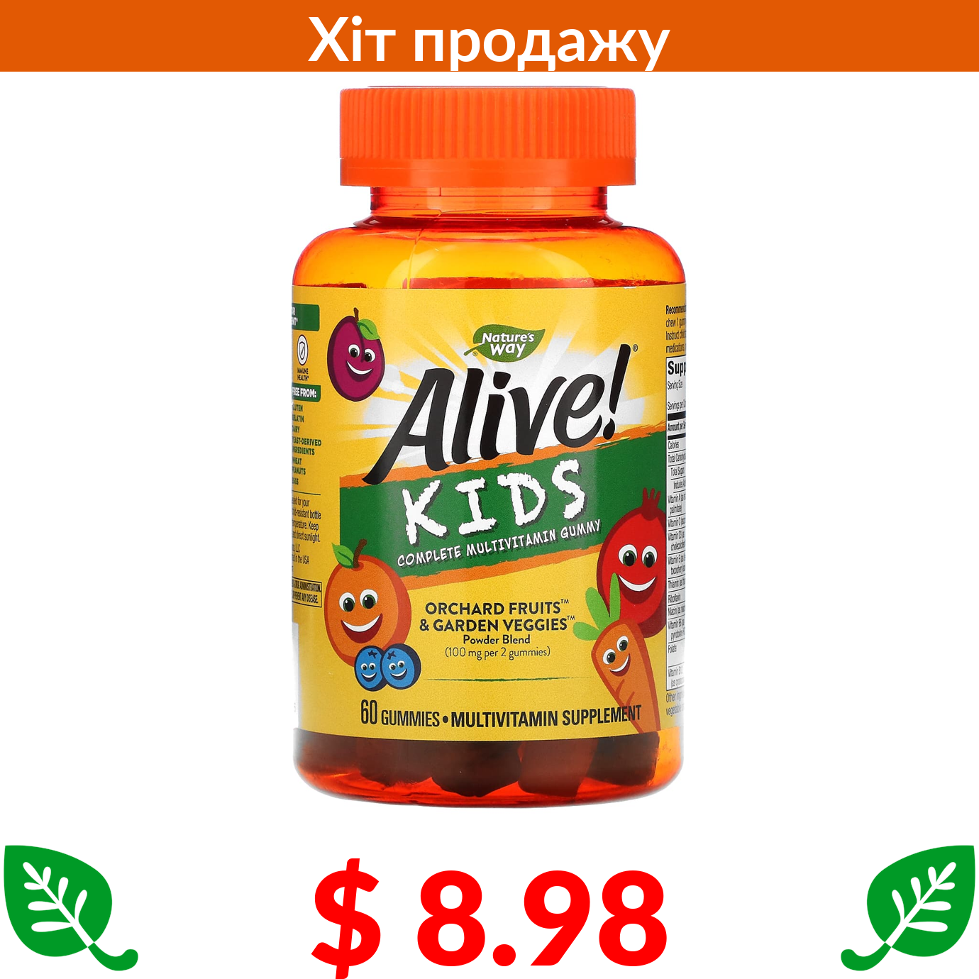 $ 8.98 Nature's Way, Alive! мультивітаміни для дітей, вишня, апельсин і виноград, 60 жувальних мармеладок