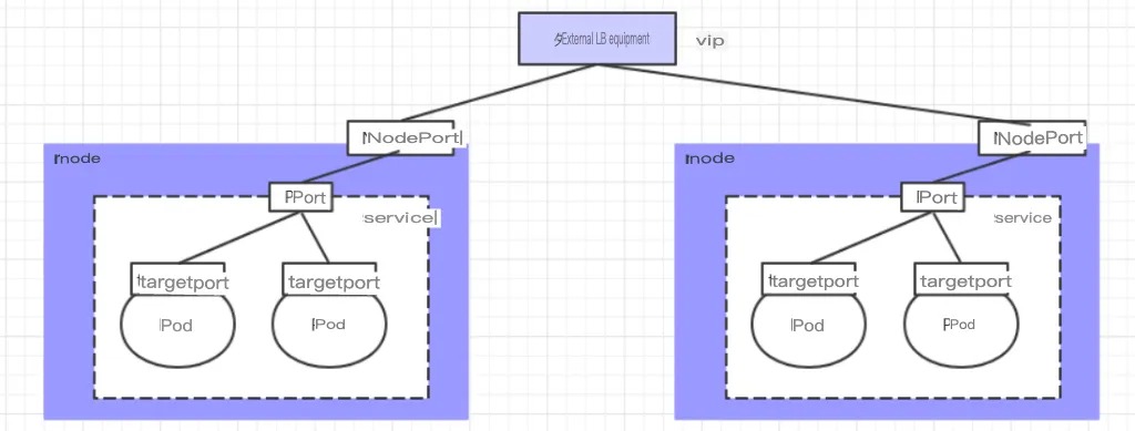 LoadBalancer and NodePort are very similar in that they both serve the purpose of exposing a port externally. The difference lies in the fact that LoadBalancer creates an external load-balancing device for the cluster, which requires support from the external environment. Requests from external services that are sent to this device will be load balanced and forwarded to the cluster after being processed by the device.
