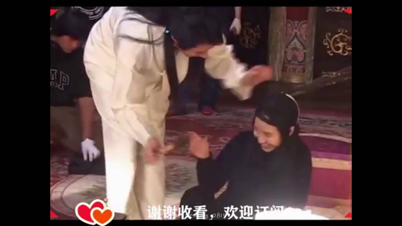 The footage, which was taken on the set of their 2008 movie Frozen Flower, shows Song Ji Hyo making a comment that causes Jo In Sung to playfully attack her with a brush . He then proceeds to stand up before wrapping his arms around her as they both laugh about the situation .