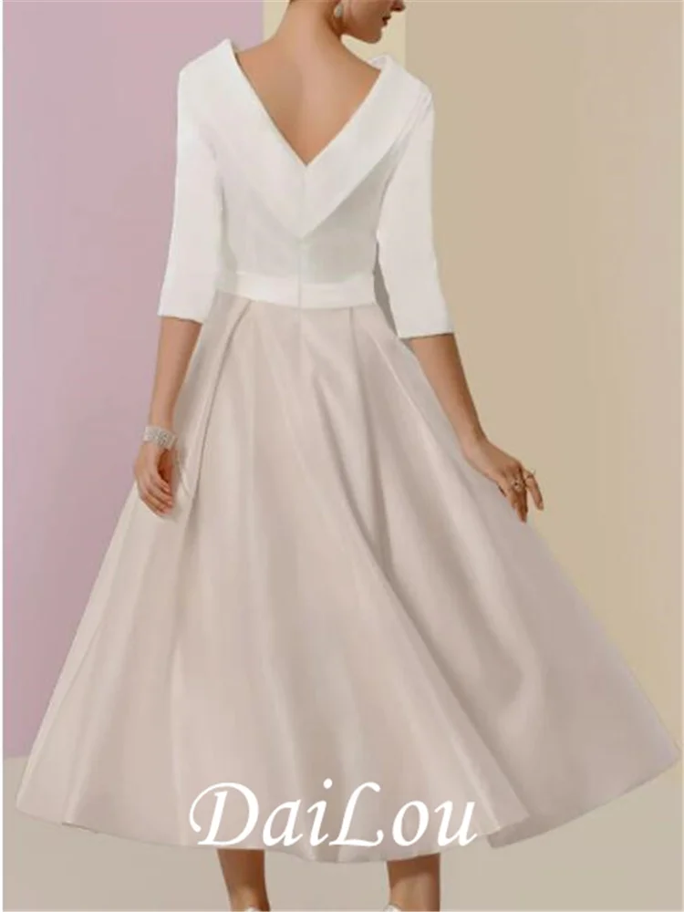 "A-Line Mother of the Bride Dress Elegant Jewel Neck Tea Length Half Sleeve with Pleats 2022" * Buy Now Just For 80$