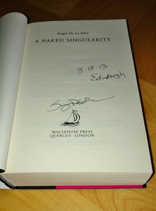 review 1: "I'm just no good at concision". p. 586A Naked Singularity is a very well written novel, with an amazing story, or stories, although every dialogue and thought of the characters is so long and dense that it's quite easy to get bored after a while. Nonetheless, it well worth the reading, once I learned to find and skip the overly-detailed parts that I didn't find very interesting, for example the entire boxing career of Wilfred Benitez.
