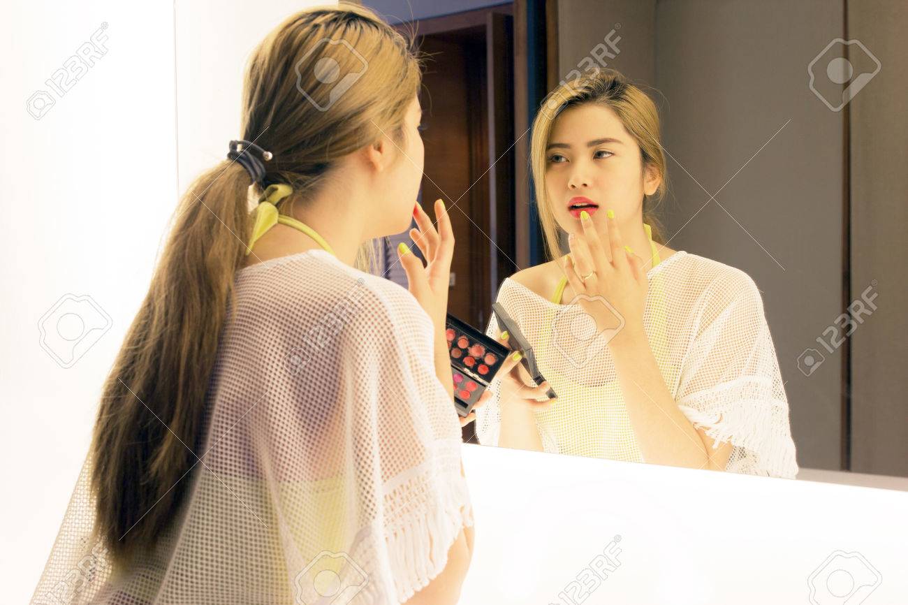 Une russe fait voir ses superbes fesses devant son miroir