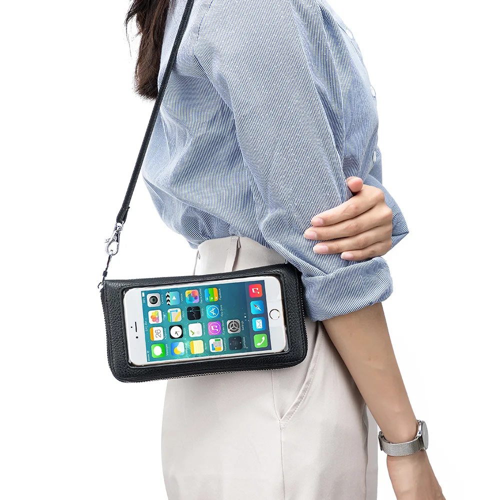 COvvdhejMMHere you can buy A7334 New Fine Workmanship Transparent Window Mobile Phone Pocket Lady Genuine Top Layer Cow Leather Rfid Single Shoulder Bag with free delivery to your post office.