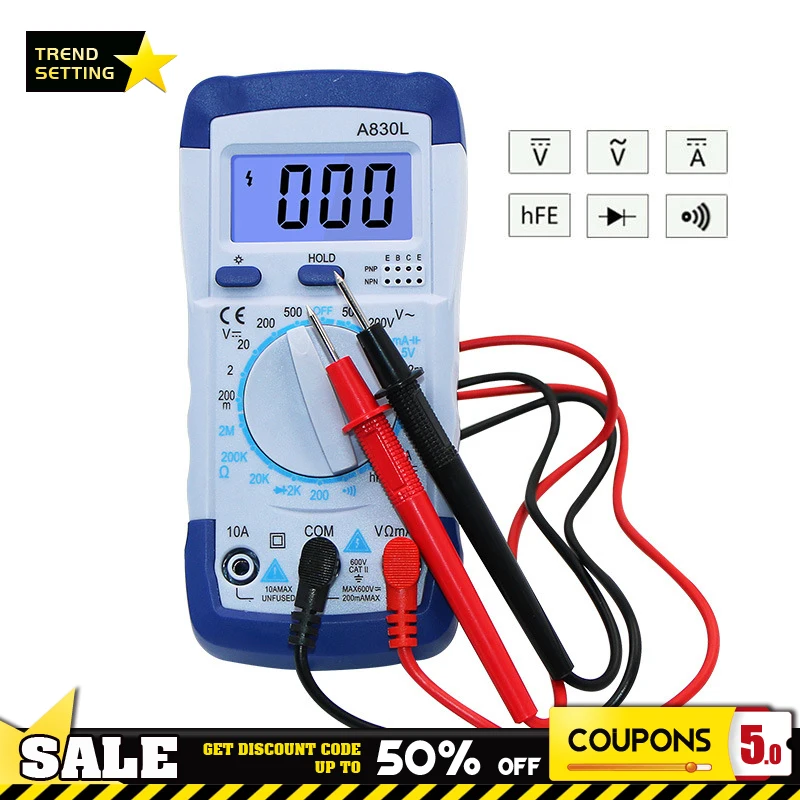 "A830L 830B AC/DC LCD Digital Multimeter Voltmeter Ammeter Ohm Tester High Safety Handheld Meter Electrical Testing Tool" * Buy Now Just For 5$