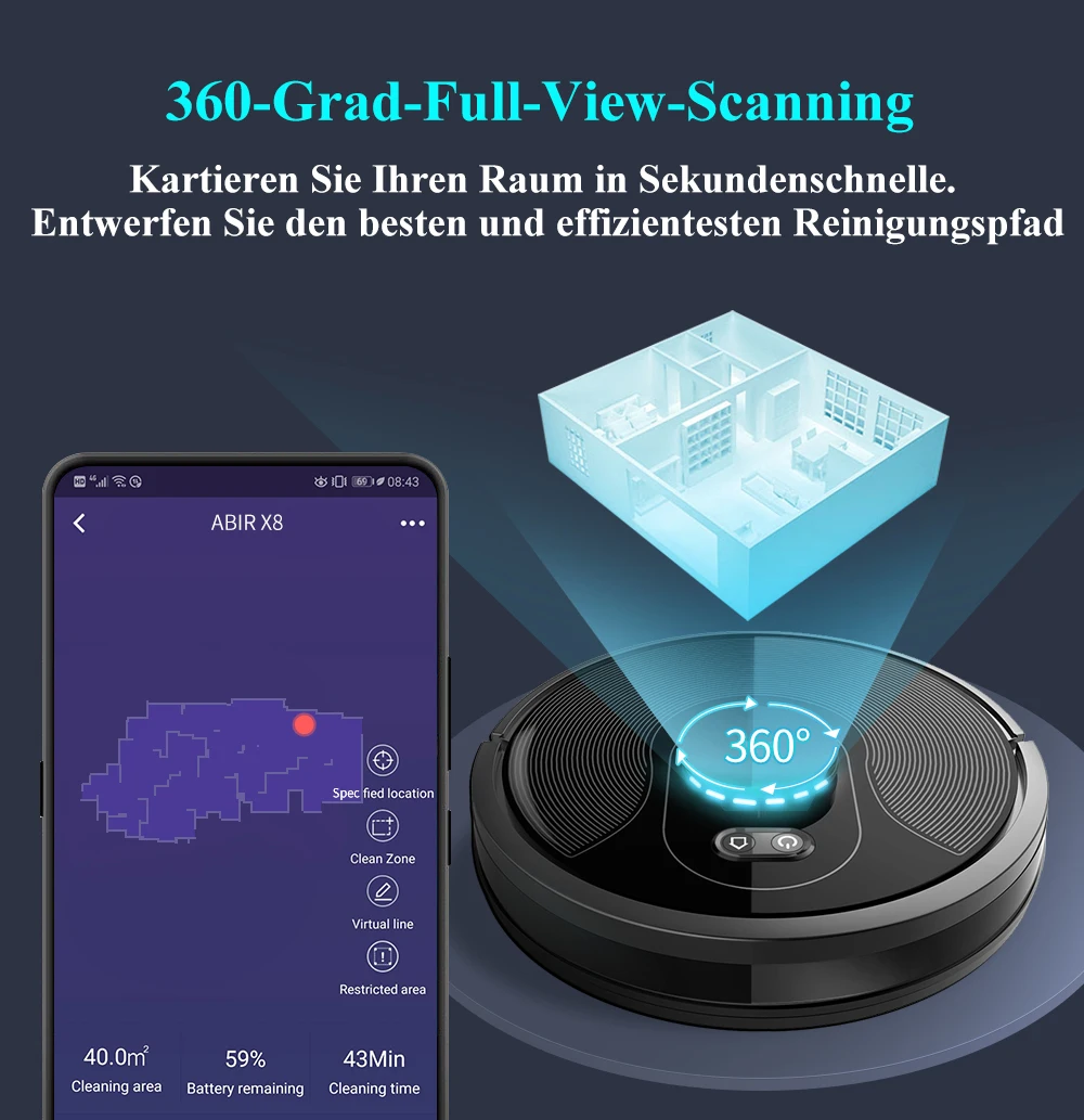 mQexwiTOHere you can buy ABIR X8 Saugroboter , Lidar + SLAM Dual Navigation, Mit Intelligente Raumerfassung, Adaptiver Routenalgorithmus with free delivery to your post office.