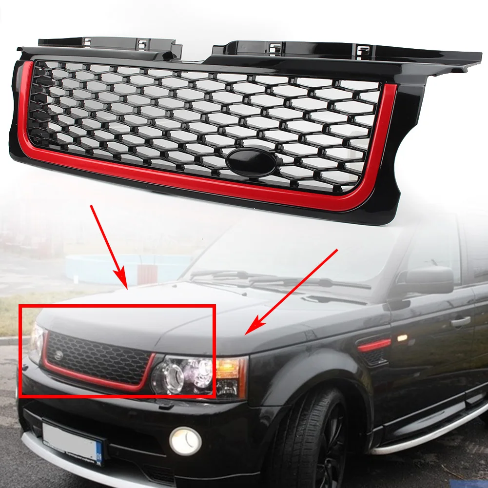 ABS Car Front Bumper Grille Mesh Grill For Land Rover Range Rover Sport RRS 2005 2006 2007 2008 2009 Black Frame Red Edge - Купить с бесплатной доставкой
