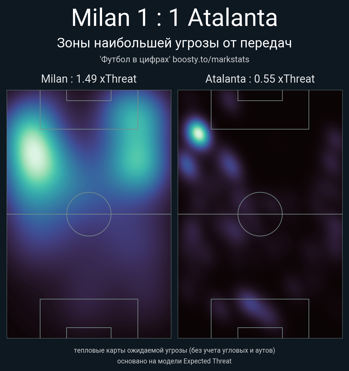xThreat без учета угловых: 1.49 - 0.55