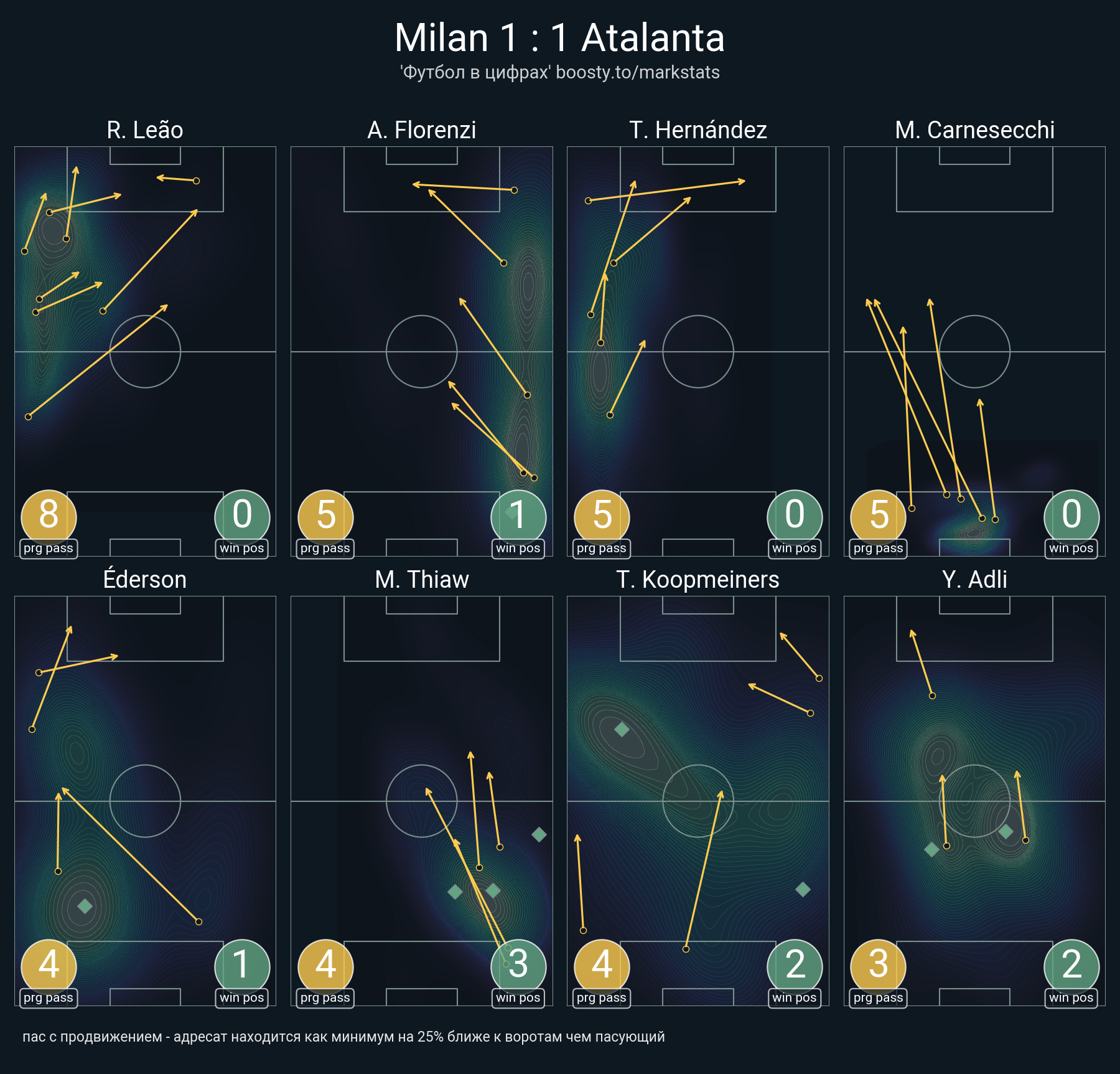 23 успешных передач из 38 попыток (1 под удар, 3 с продвижением, 8 на трети соперника)