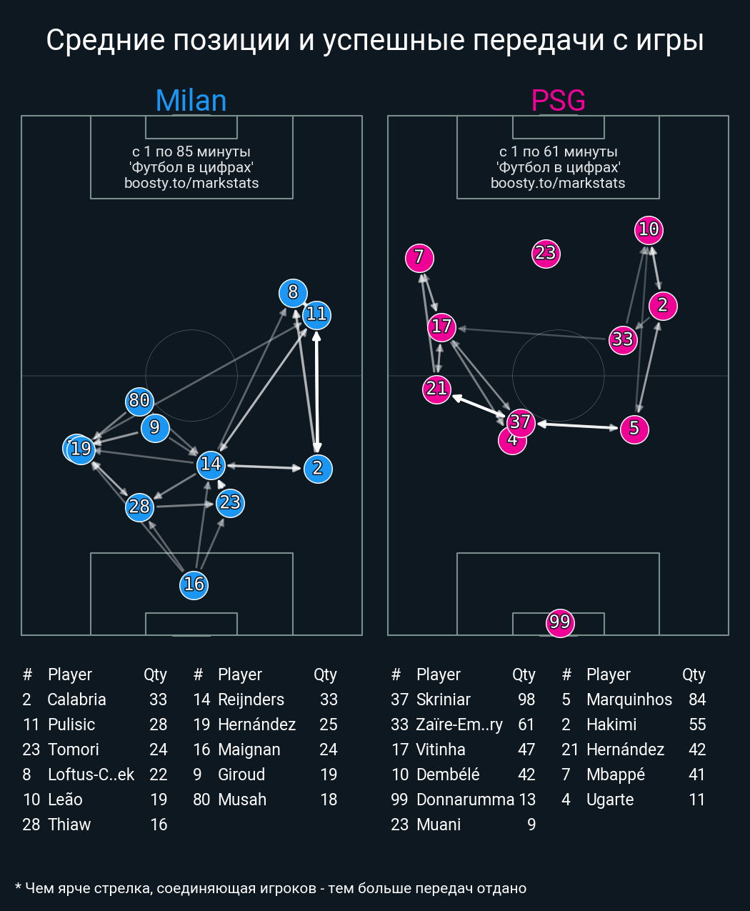 17 успешных передач из 28 попыток (1 ассист, 1 под удар, 2 с продвижением, 4 на трети соперника)