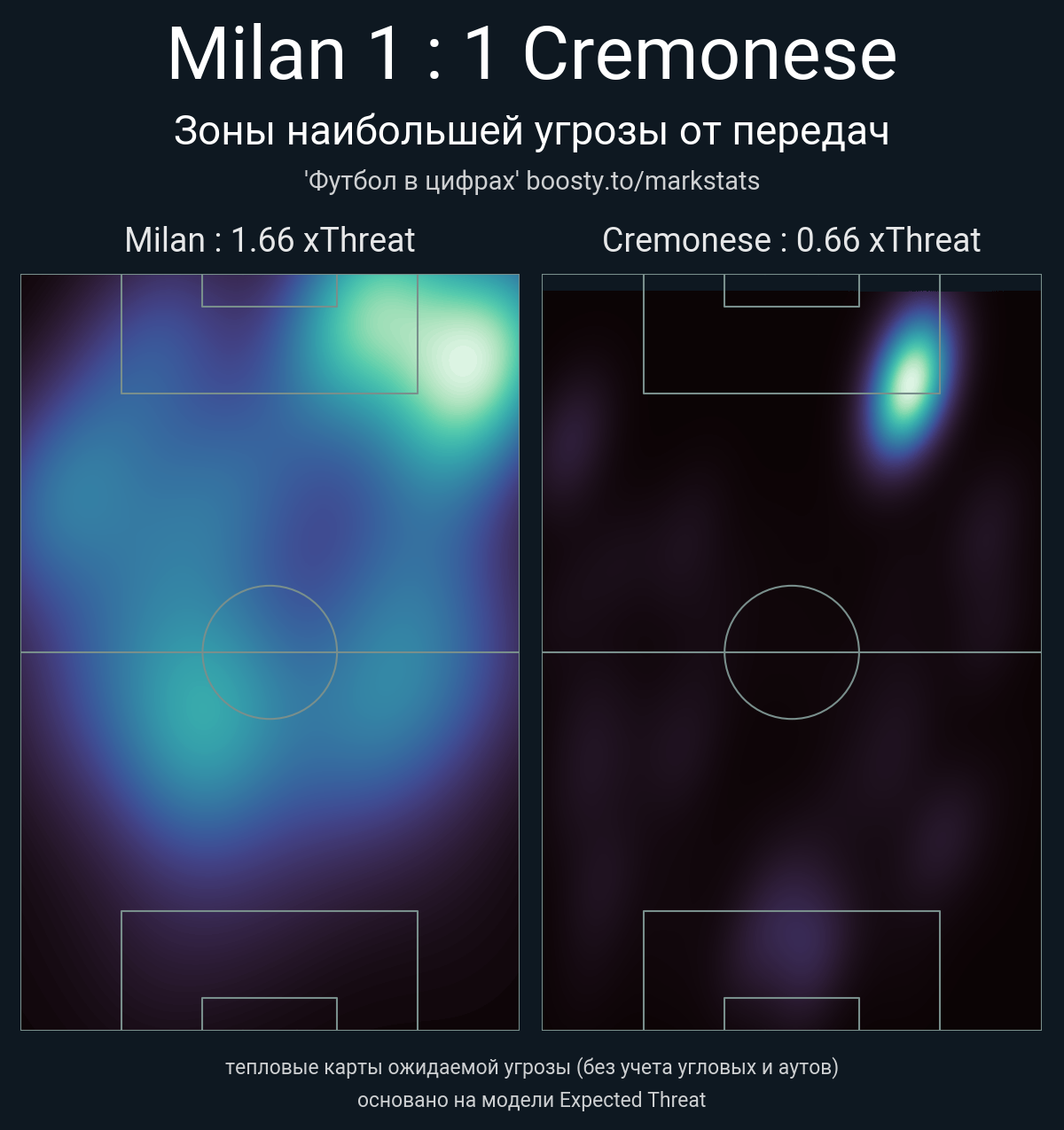 xThreat без учета угловых: 1.66 - 0.66
