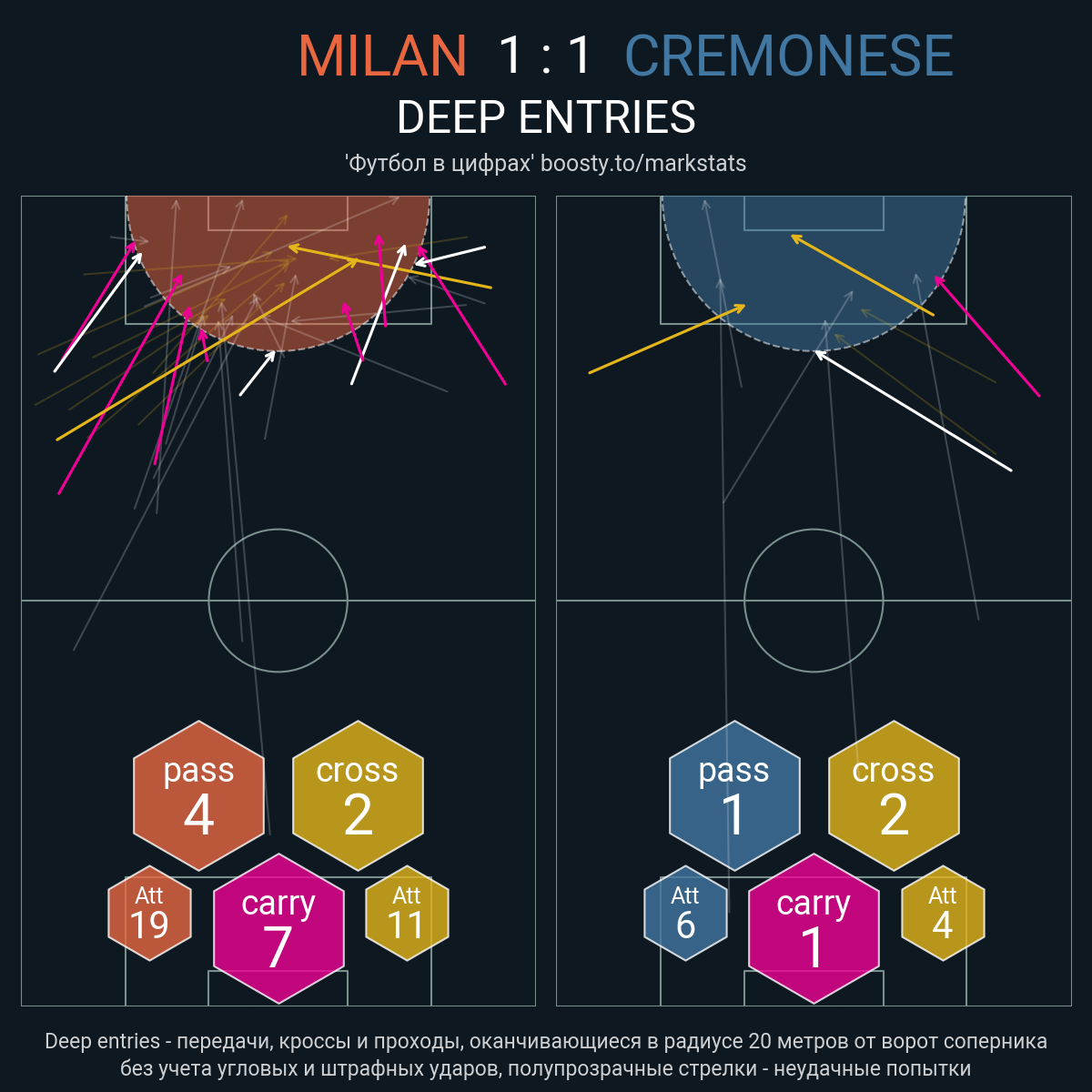 13 успешных передач из 24 попыток (2 под удар, 3 с продвижением, 1 на трети соперника)