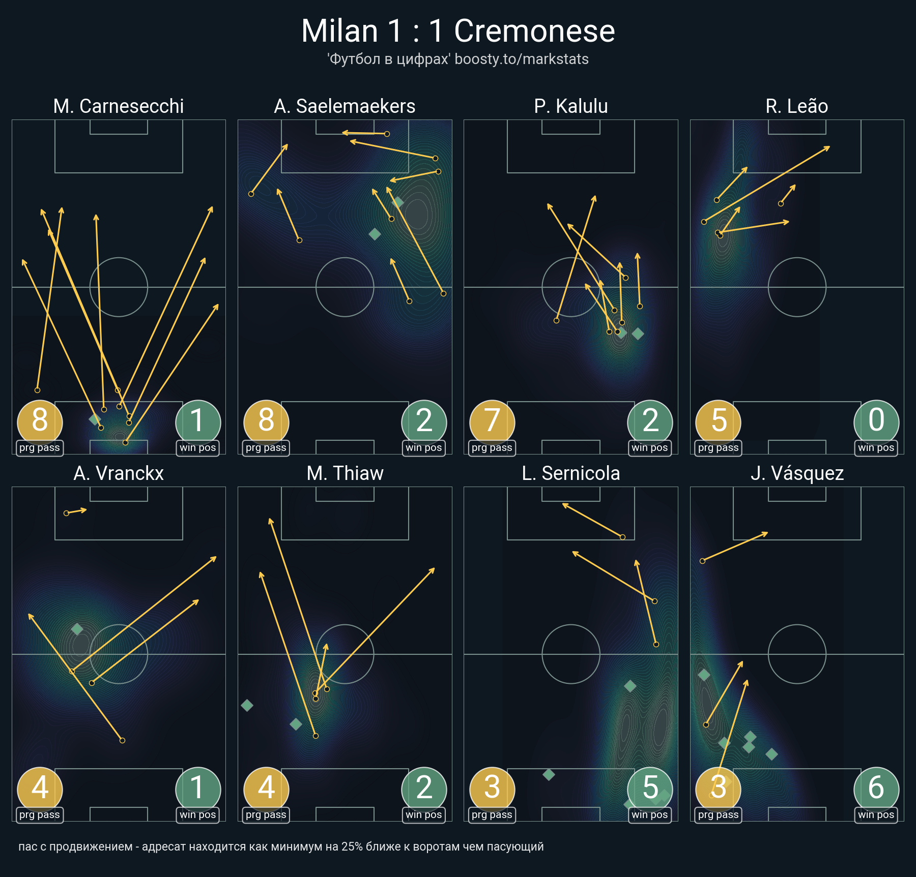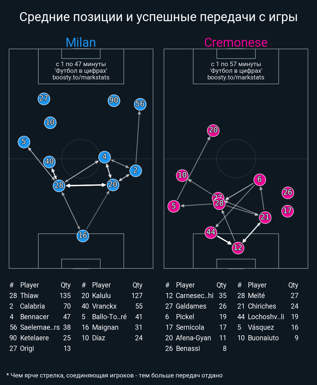 120 успешных передач из 135 попыток (4 с продвижением, 1 на трети соперника)