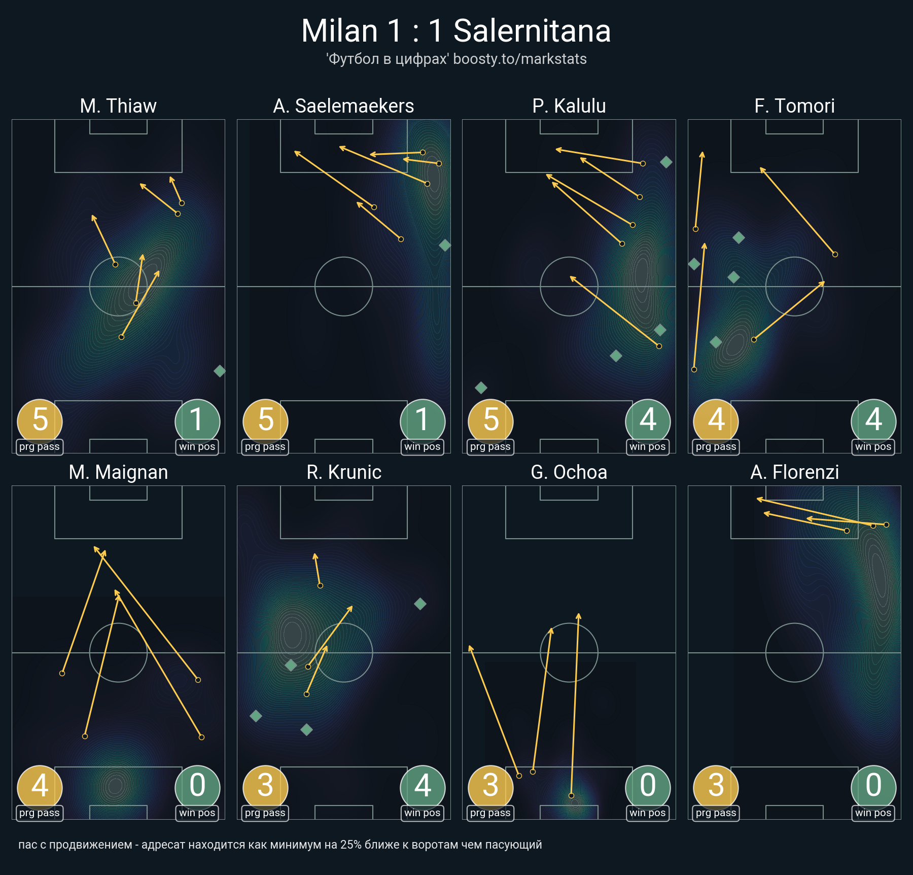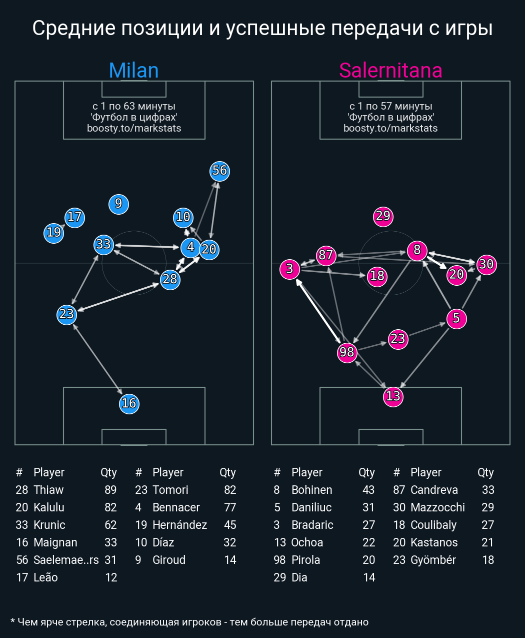 55 успешных передач из 63 попыток (3 с продвижением, 6 на трети соперника)