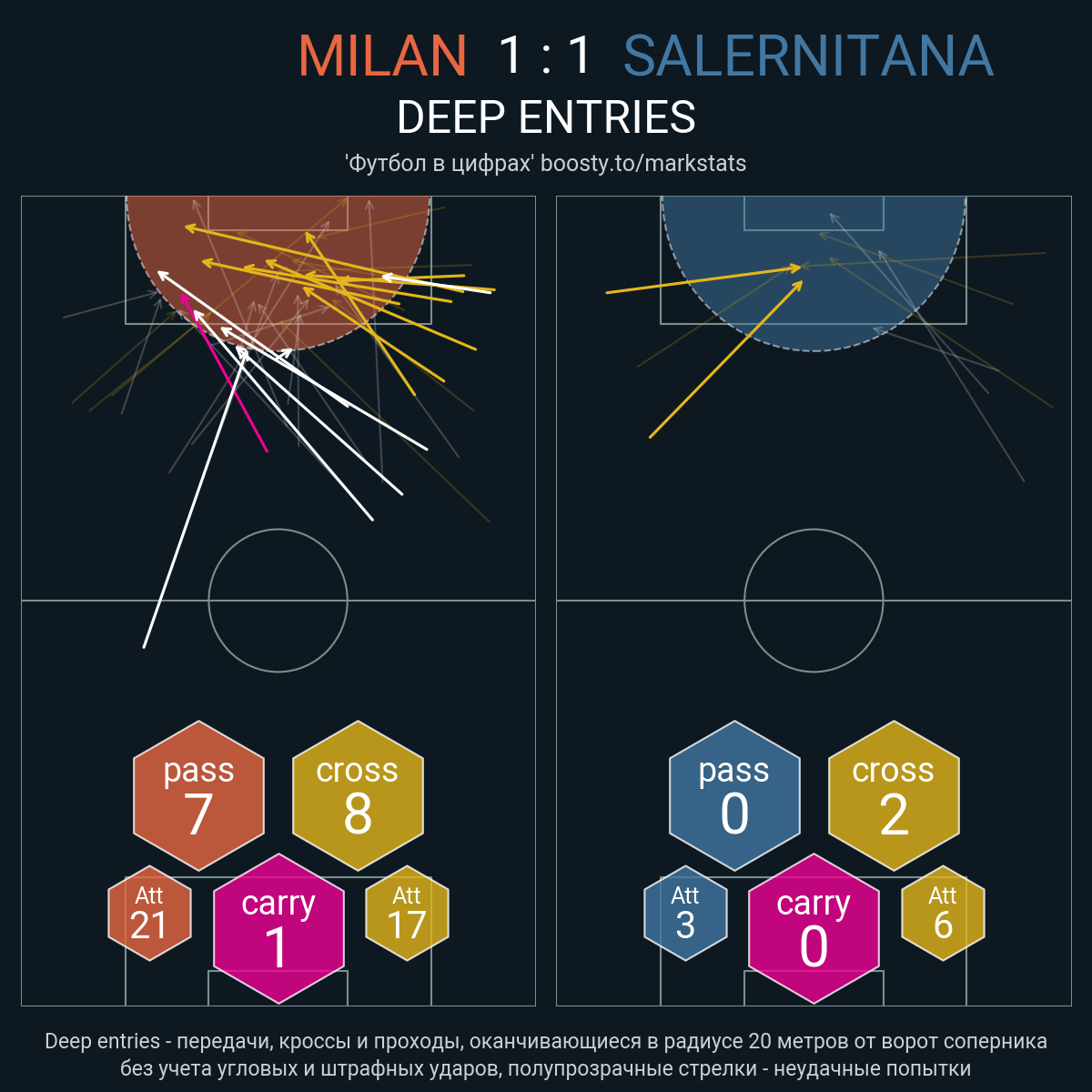 34 успешных передач из 41 попыток (3 под удар, 5 с продвижением, 15 на трети соперника)