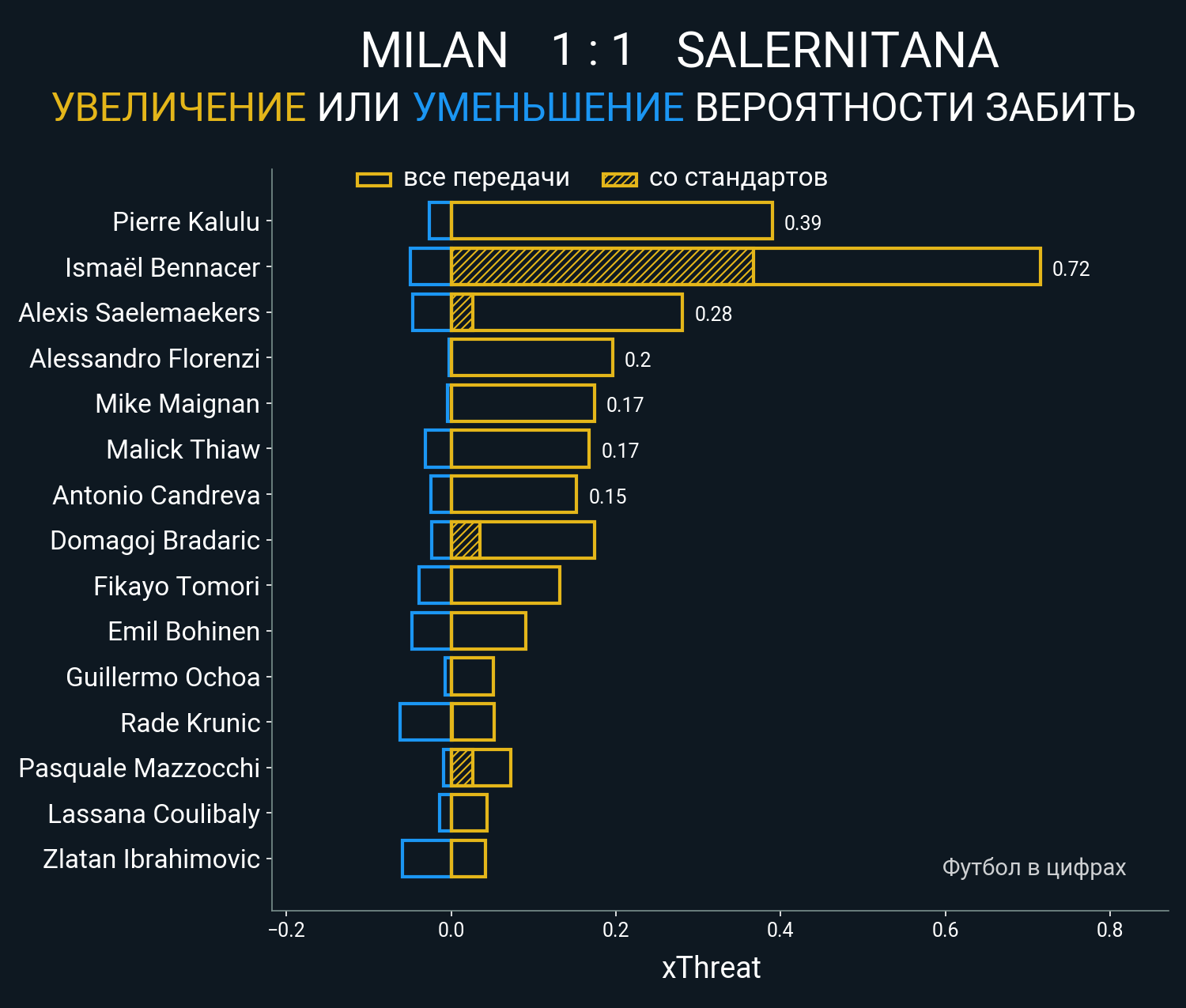 0.35 очка xT (+0.37 со стандартов)