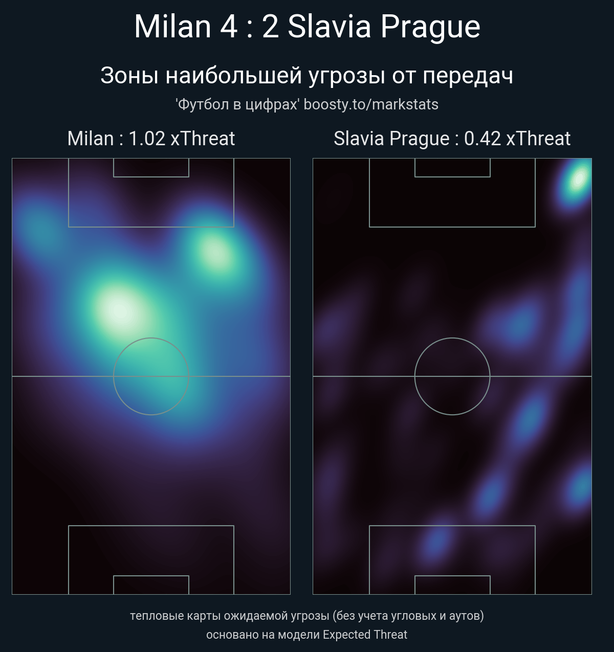 xThreat без учета угловых: 1.02 - 0.42