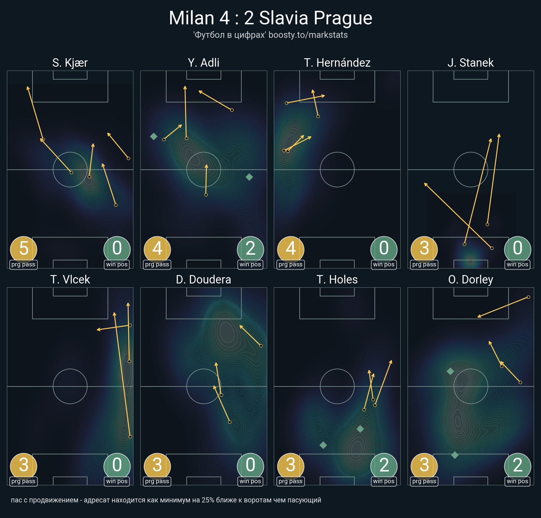 44 успешных передач из 50 попыток (1 под удар, 1 с продвижением, 2 на трети соперника)