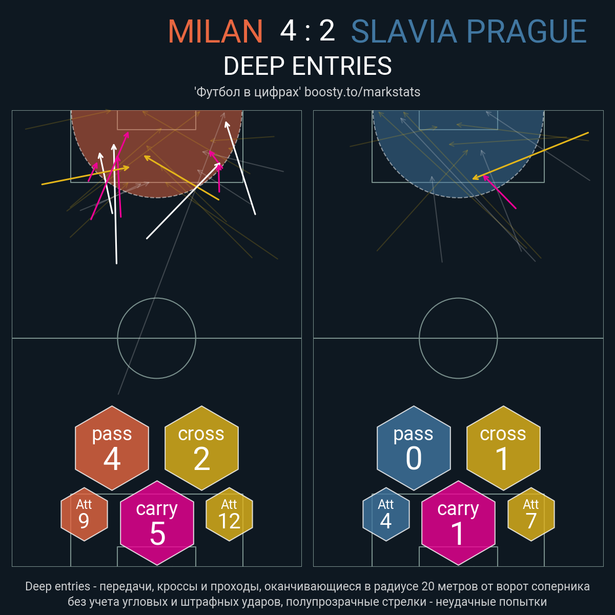13 успешных передач из 16 попыток (1 под удар, 1 с продвижением, 6 на трети соперника)