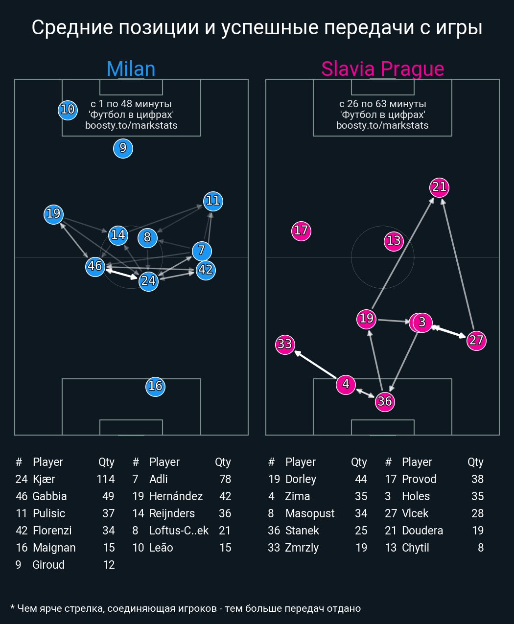 101 успешных передач из 114 попыток (5 с продвижением, 3 на трети соперника)