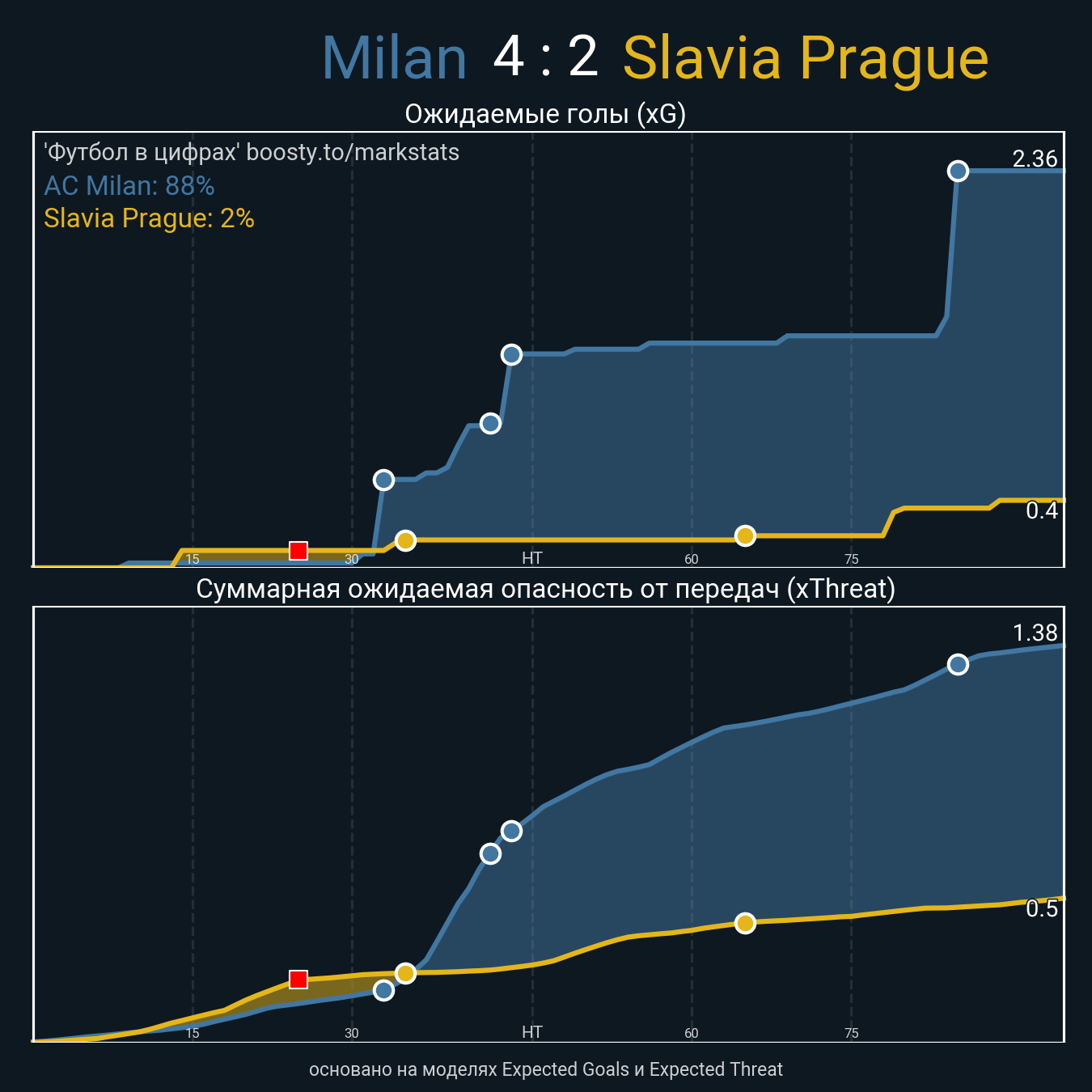 Ожидаемые голы (NPxG): 2.36 - 0.4