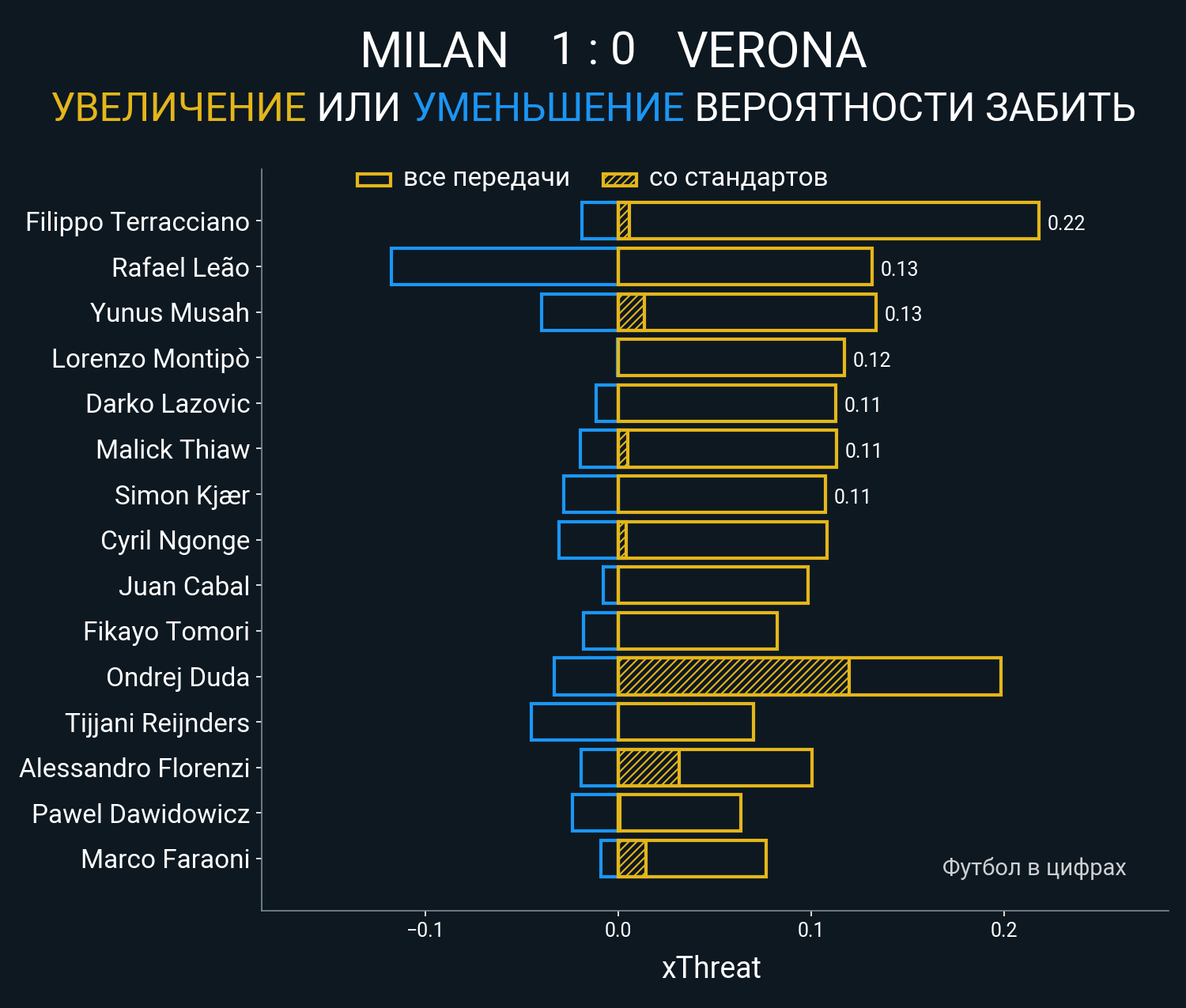 0.13 очка xT (+0.0 со стандартов)