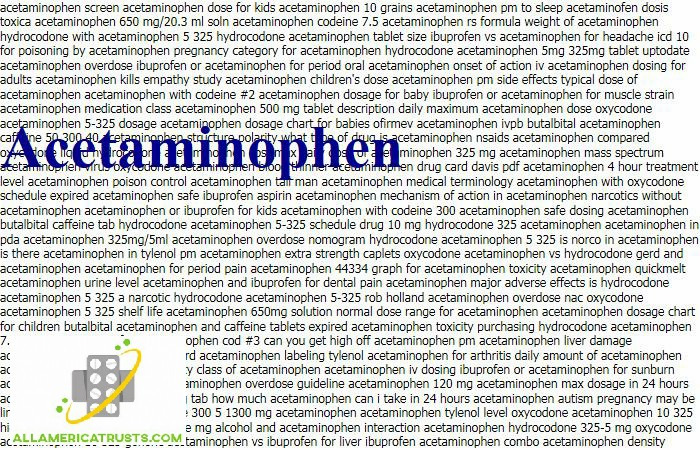 ACETAMINOPHEN 325 MG TABLET CONTROLLEDJohn Jeffersonhttp://AllAmericaTrusts.com/acetaminophen.php - >>> CLICK HERE <<<