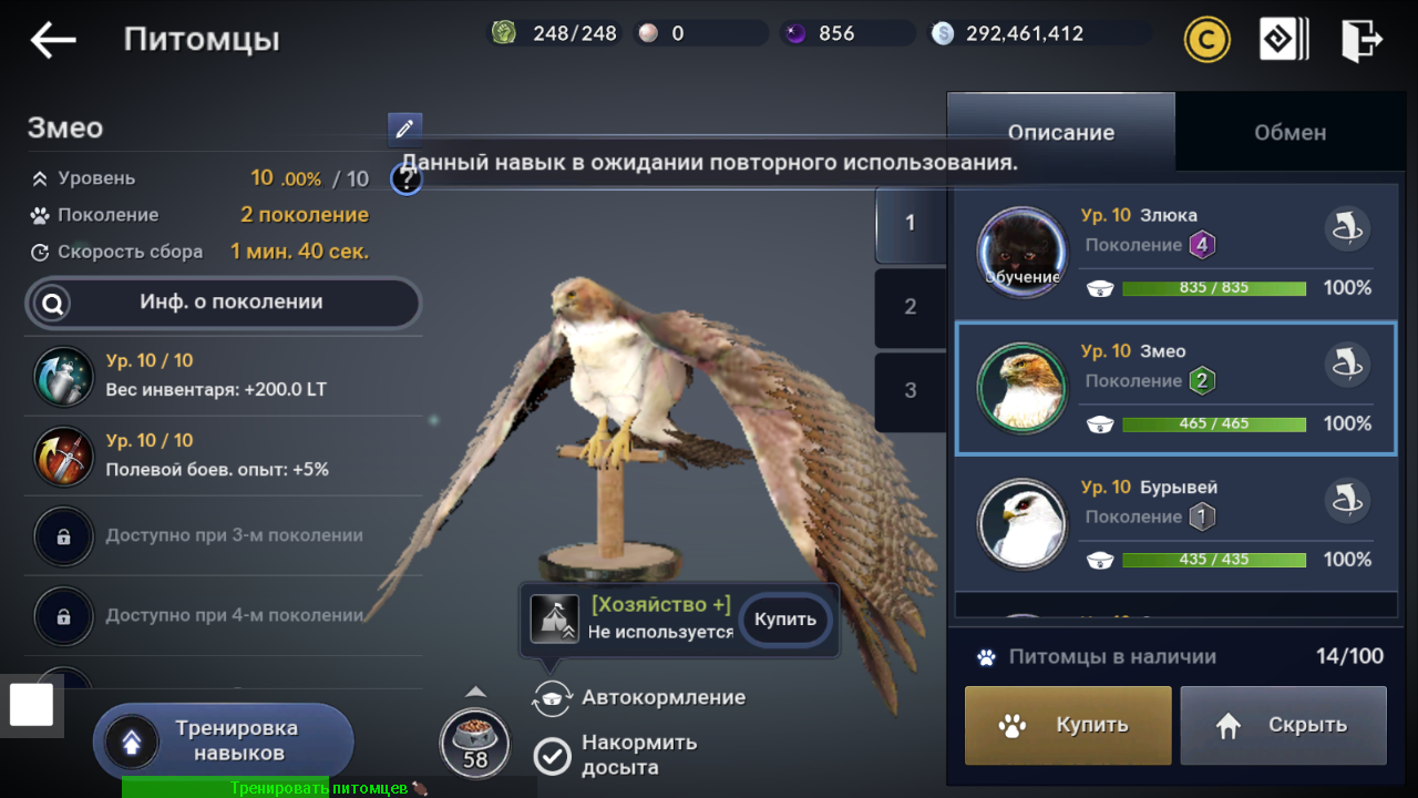 ✅ Авто тренировка навыков питомцев